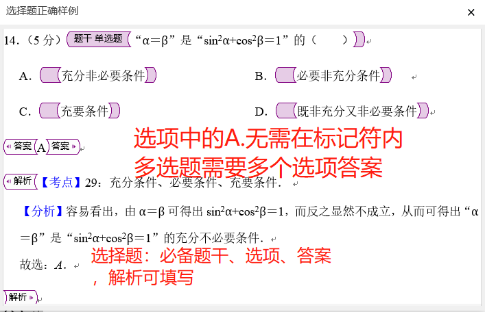 识别完成后如下图。必备信息有题干、答案,可选信息有解析。
