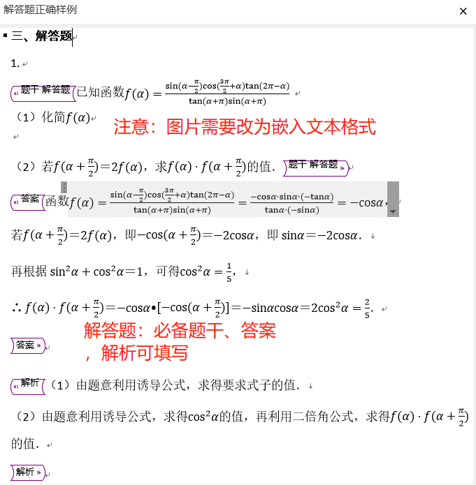 识别完成后如下图。必备信息有题干、小题、答案,可选信息有解析。