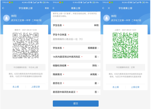 没有上报过健康数据的学生就会是灰码,点击去上报,填报一次健康信息,再返回查看健康码就会变色