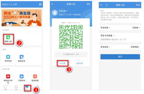a.学生今日体温项填写孩子的体温,体温大于等于37.3摄氏度时,学生教育系统健康码将会变为黄码。