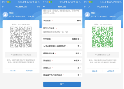 没有上报过健康数据的学生就会是灰码,点击去上报,填报一次健康信息,再返回查看健康码就会变色